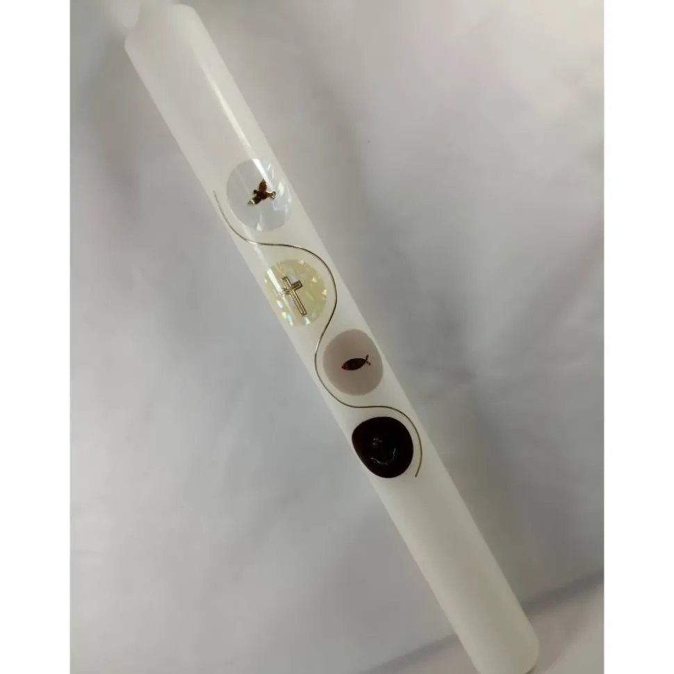 Kommunionkerze Taufkerze lang christliche Symbole Mädchen Jungen Name Datum individualisierbar 400/40 mm