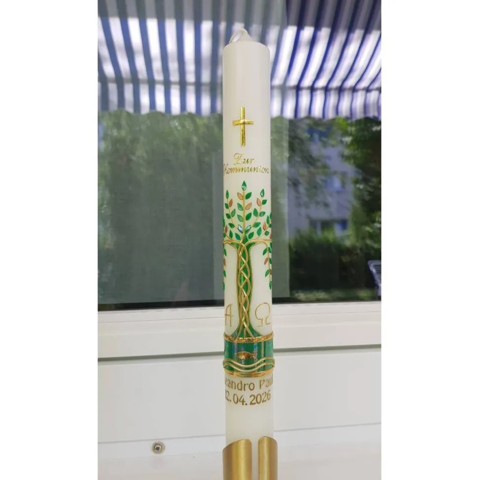 Kommunionkerze Taufkerze lang Lebensbaum Baum Jungen Mädchen Name Datum individualisierbar 400/40 mm