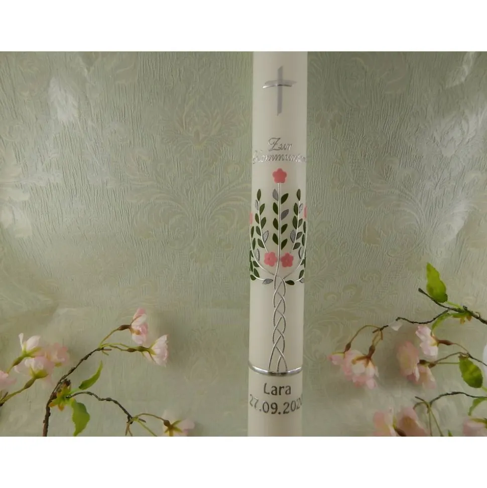 Die wunderschöne Kommunionkerze Taufkerze Baum Lebensbaum für Mädchen Jungen 400×40 mm