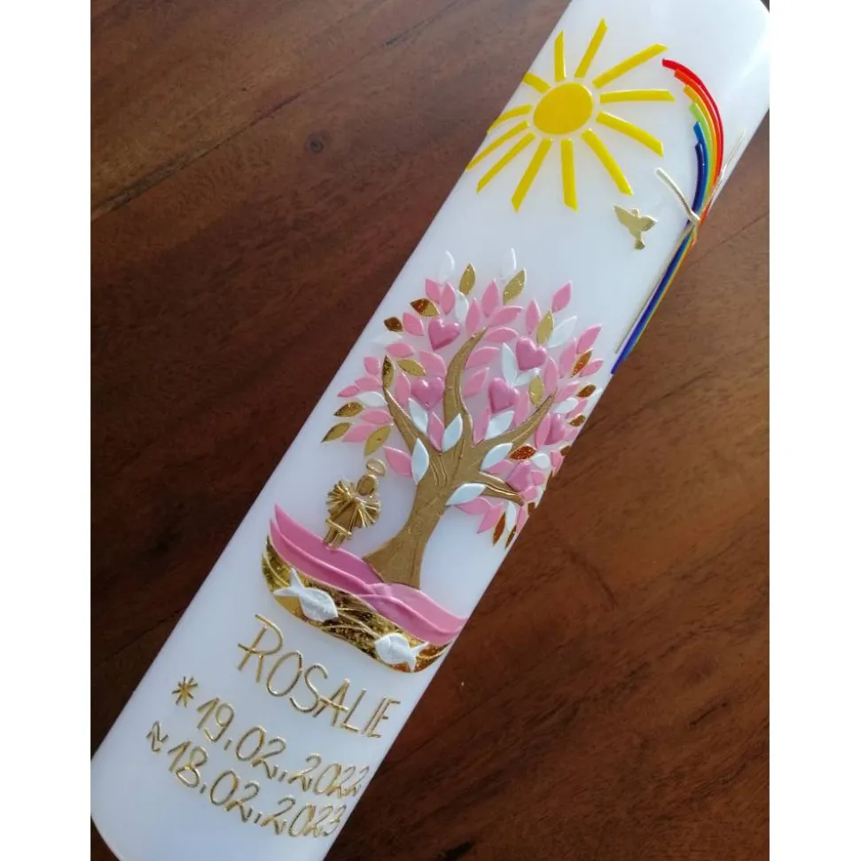 Bei unseren Baum-Kommunionkerze/Taufkerzen handelt es sich um hochwertige Handarbeit.