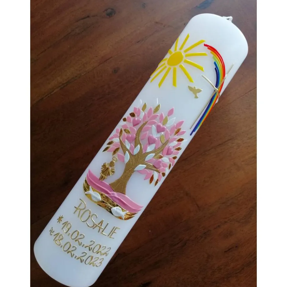Kerze zur Taufe oder Kommunion Lebensbaum / Baum