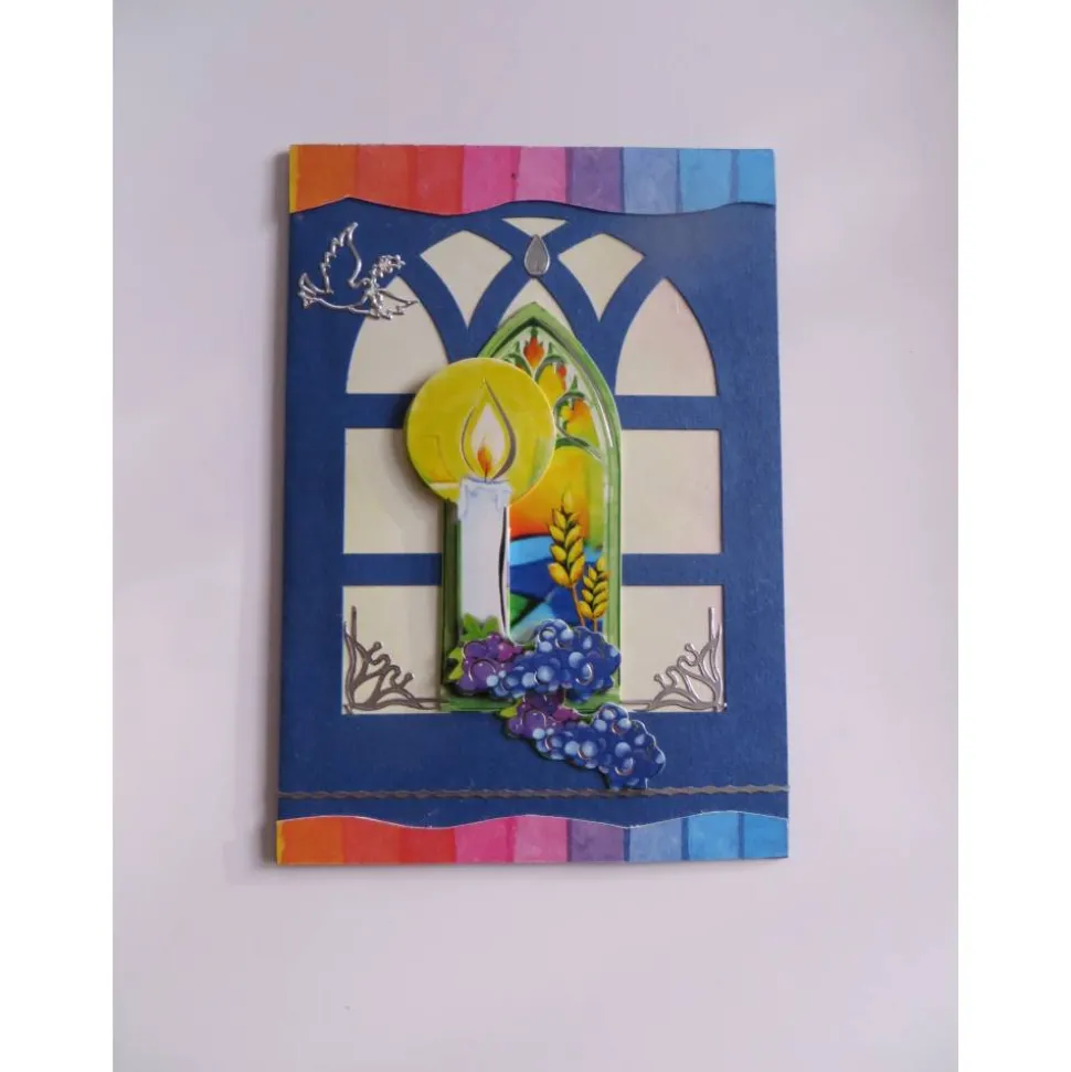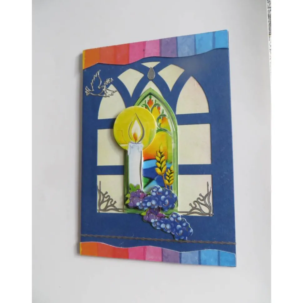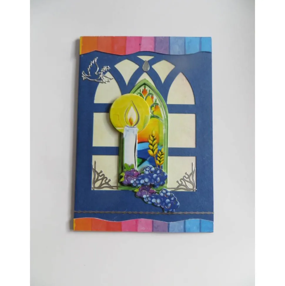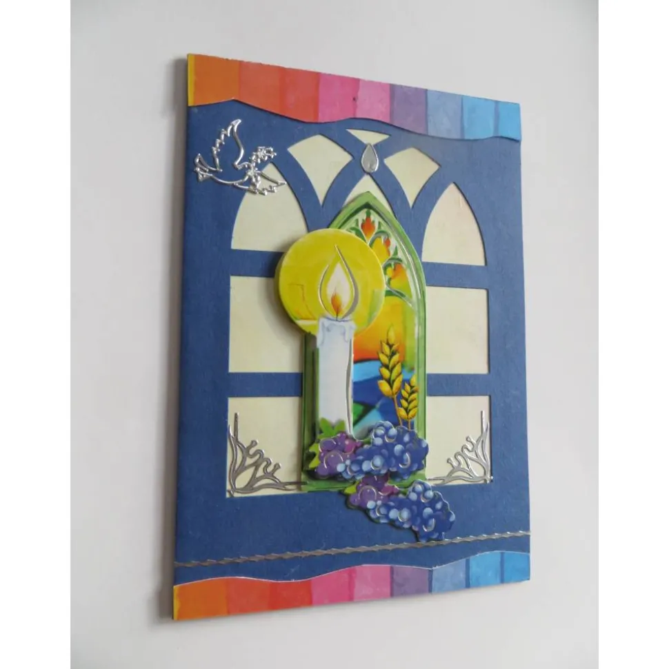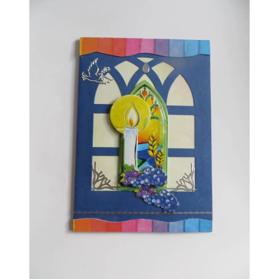 Mitten auf der Kommunionskarte eine wunderschöne große 3d Applikation. Ein Kreuz ,Der Kelch und die Trauben in einem Fenster. Für verschiedene Kommunionsthemen geeignet.Mitten auf der Kommunionskarte eine wunderschöne große 3d Applikation. Ein Kreuz ,Der Kelch und die Trauben in einem Fenster. Für verschiedene Kommunionsthemen geeignet.
