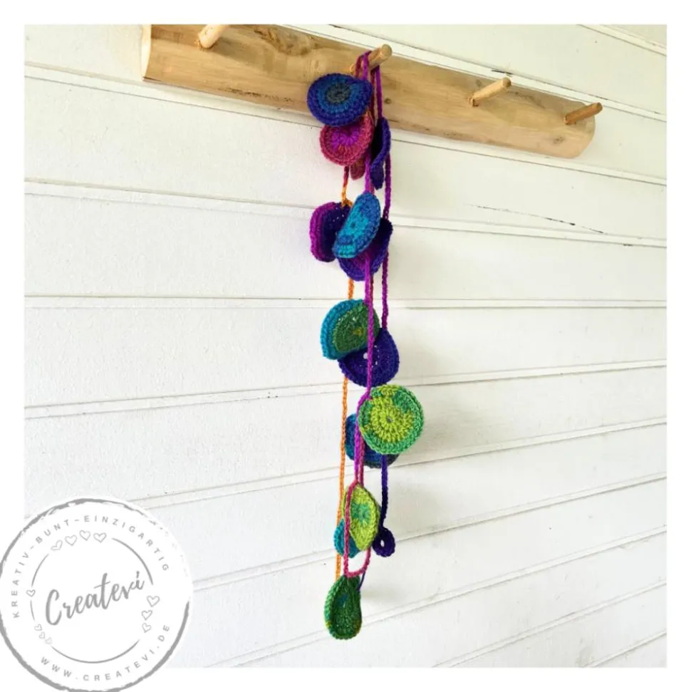 Hol dir mit dieser gehäkelten Girlande eine besondere, farbenfrohe Dekoration und gestalte deine Räume ganz nach deinem Stil.