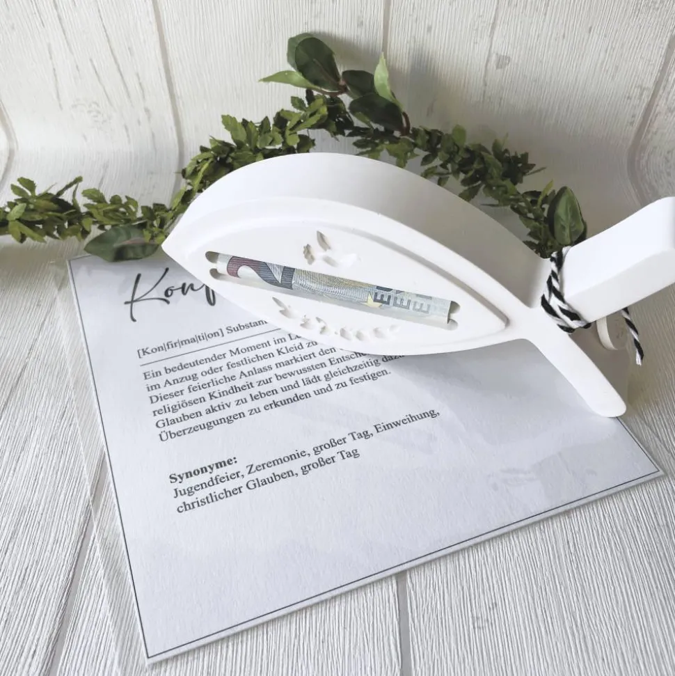 Die Lieferung erfolgt ohne den Geldschein und ohne die Deko.