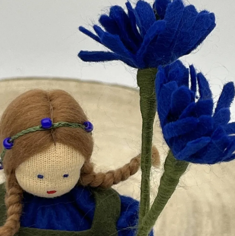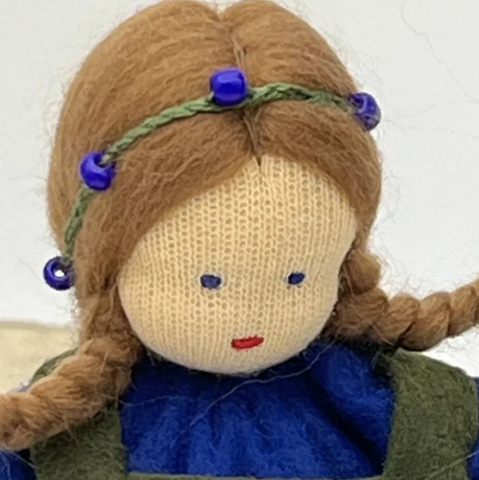 Das Püppchen ist unten geschlossen und für einen guten Stand unten mit feinem Dekokies und der Rest mit reiner Schurwolle gefüllt.