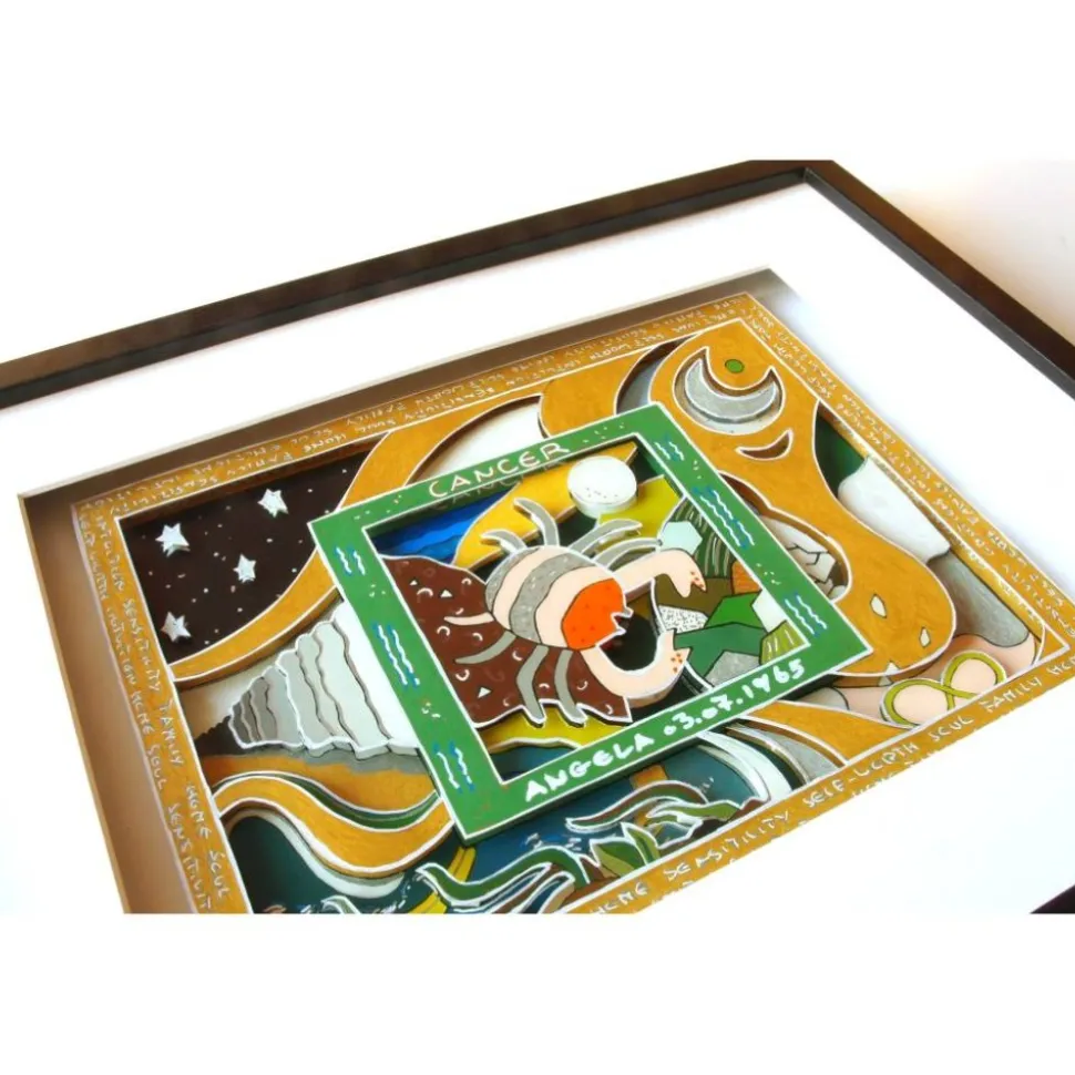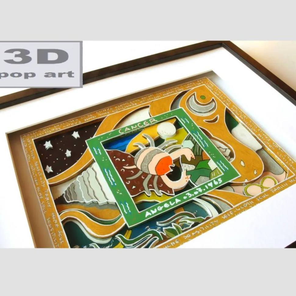 Diese 3D-Sternzeichenbilder werden im Bild beschriftet mit Ihrem Namen und Geburtsdatum. Sie sind daher ein ganz persönliches Geschenk, – für einen lieben Freund, Verwandten oder einfach für Sie selbst. Alle Sternzeichen-Bilder sind gerahmt ( Ready To Hang ). Auf der Rückseite der Rahmung : alle wichtigen Erläuterungen zu der Energie dieses Zeichens.
