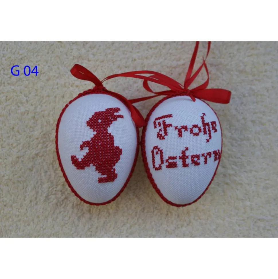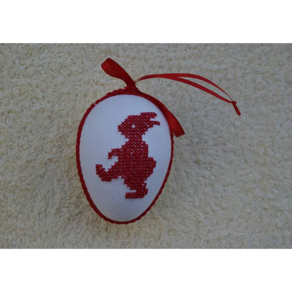 Kreuzstich Osterei Handarbeit gestickt  Oster Motiv   9cm, rot weiß,