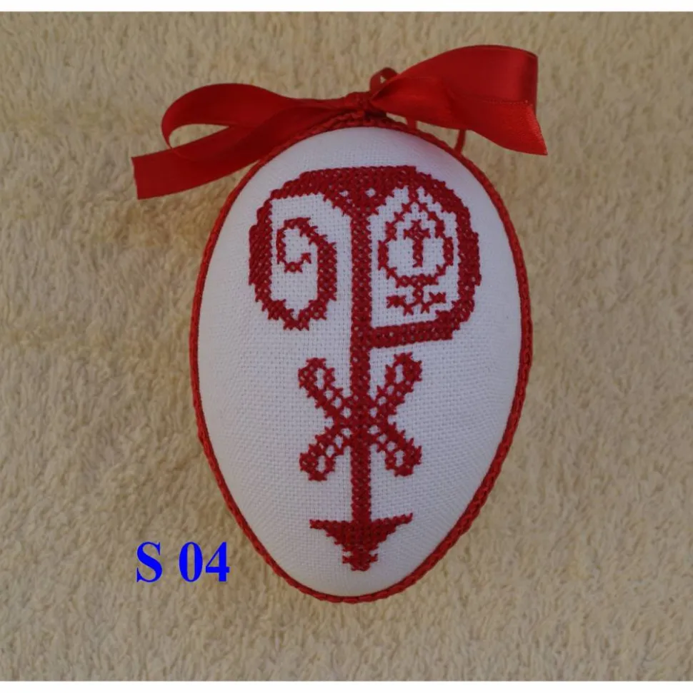 Kreuzstich Osterei Handarbeit gestickt  religiöses Motiv   12cm, rot weiß,