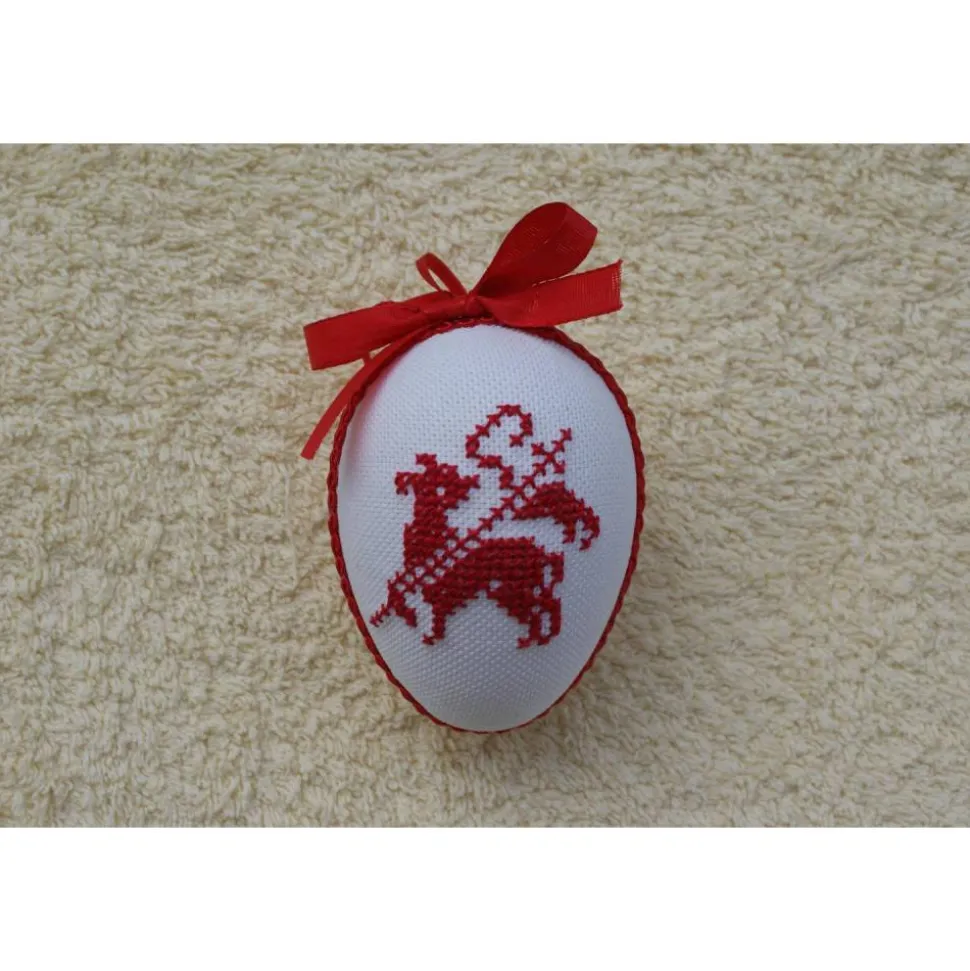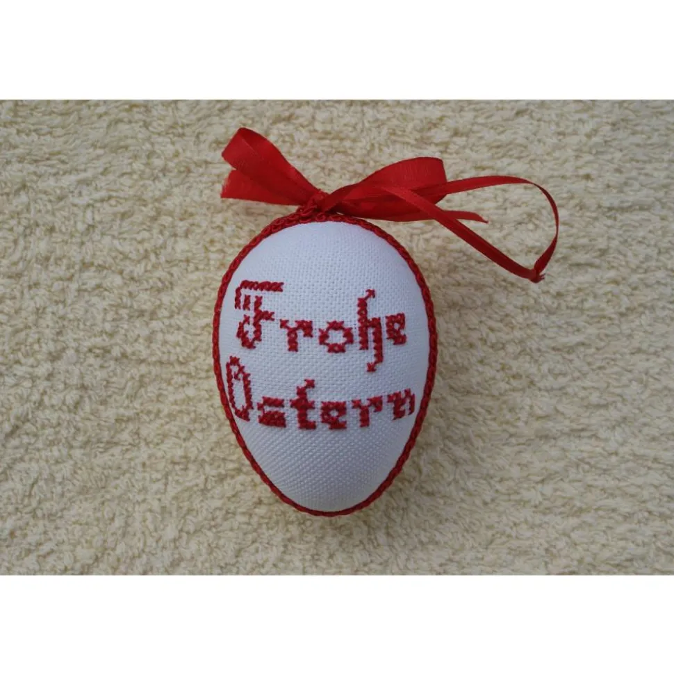 Kreuzstich Osterei Handarbeit gestickt  religiöses Motiv   9cm, rot weiß,
