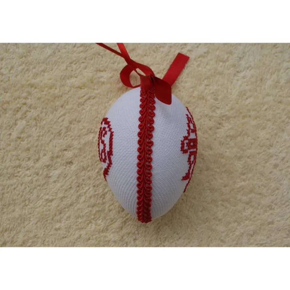 Kreuzstich Osterei Handarbeit gestickt  religiöses Motiv   9cm, rot weiß,