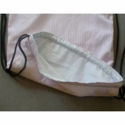 Ich habe den “ Krims – Krams “ Büdel aus einer rosa / weiß gestreiften Baumwolle genäht, das Futter, ebenfalls aus Baumwolle, ist grau.