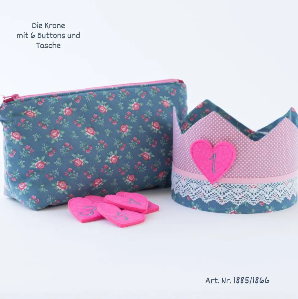 Zur sicheren Aufbewahrung der Krone und der austauschbaren Herzchen Buttons gibt es die passende Tasche. Diese handgenähte Tasche besteht aus zwei Lagen hochwertigem Baumwollstoff und ist mit Vlies verstärkt.
