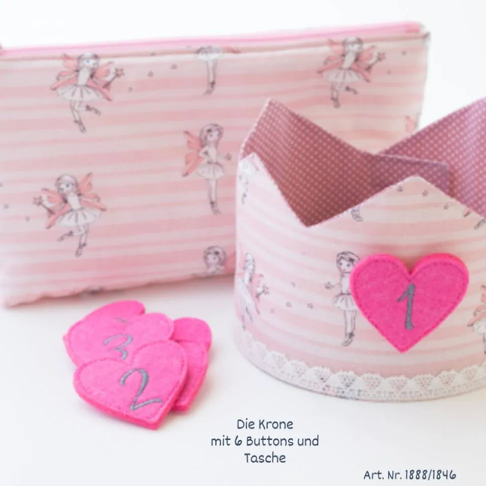 Zur sicheren Aufbewahrung der Krone und der austauschbaren Zahlen gibt es die passende Tasche. Diese handgenähte Tasche besteht aus zwei Lagen hochwertigem Baumwollstoff, ist mit Vlies verstärkt und auf der Vorderseite mit einer stilvollen Krone bestickt. So bleiben Krone und Zubehör stets gut geschützt und ordentlich verstaut.