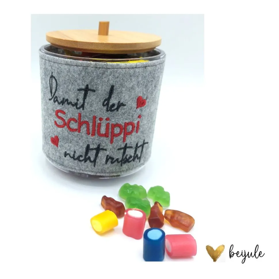Der Spruch ist direkt auf den Filz gestickt.
