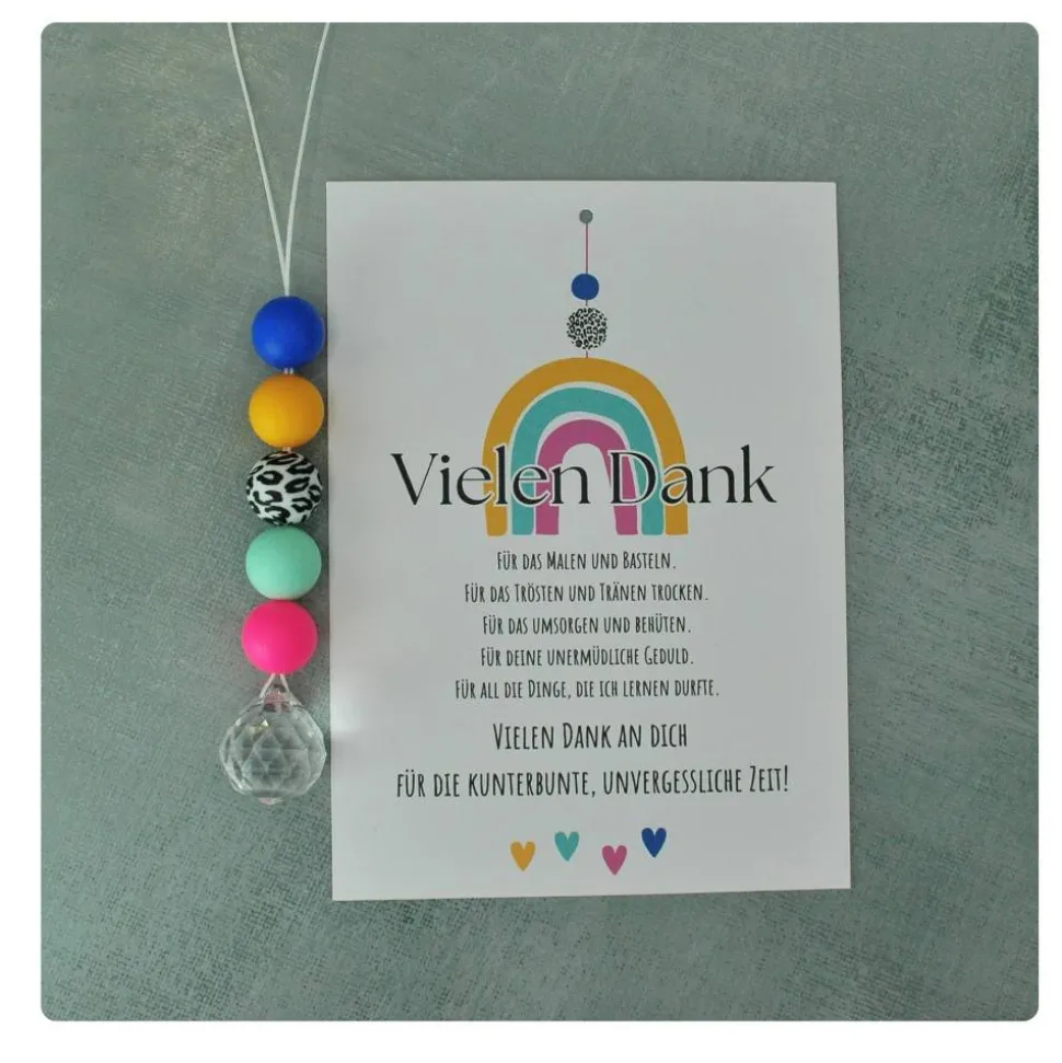 Ein einzigartiger Suncatcher und eine liebevolle Karte: Dieses bedeutungsvolle Geschenk, bestehend aus einem süßen Sonnenfänger und einer Karte mit Dankesspruch, ist die ideale Wahl, um deine Wertschätzung auszudrücken.