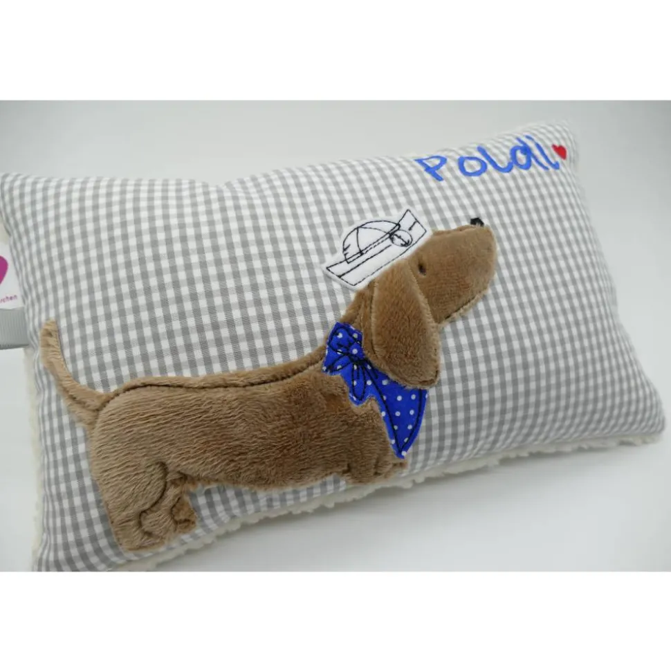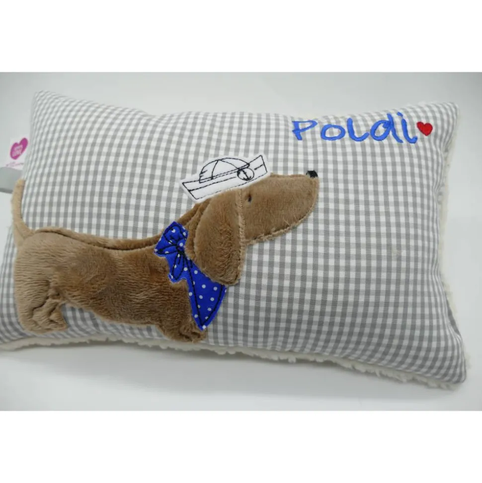 Aufwendig und mit viel Liebe zum Detail genähtes und gesticktes Mini-Kissen