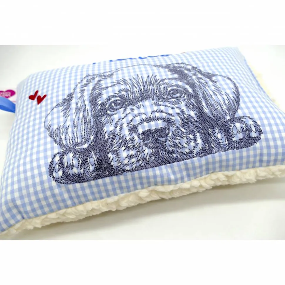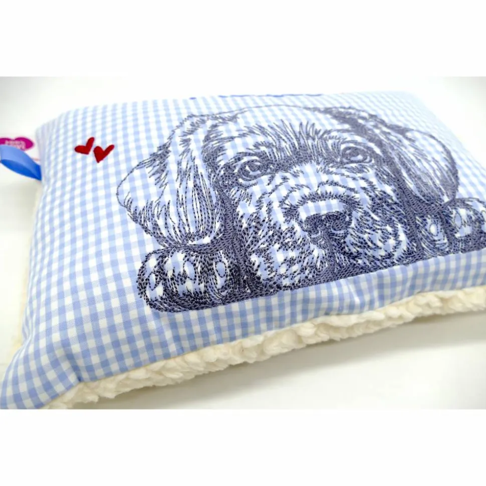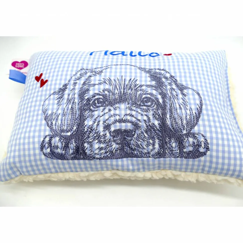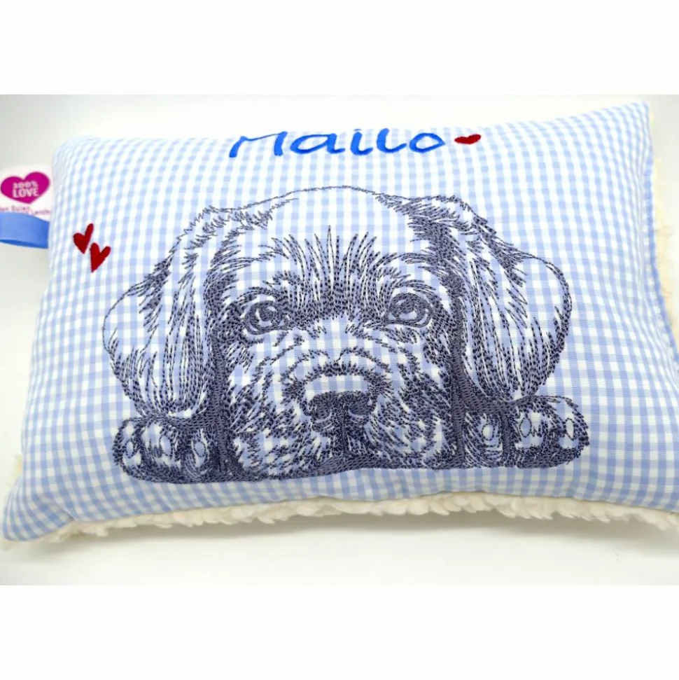 Aufwendig und mit viel Liebe zum Detail genähtes und gesticktes Mini-Kissen