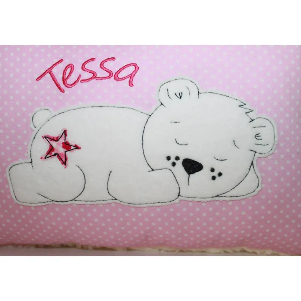 Vorderseite Baumwollstoff und auf der Rückseite Teddystoff.