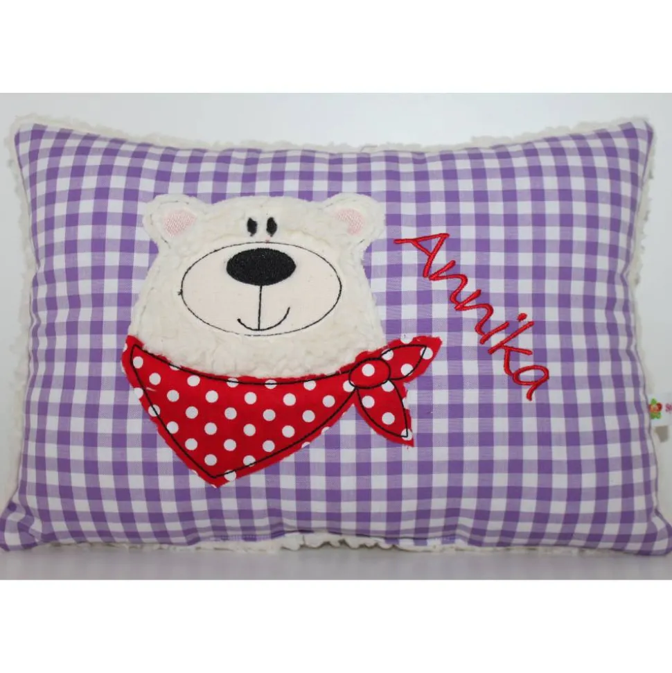 Vorderseite Baumwollstoff, für den Bärchenkopf verwende ich Teddystoff und auf der Rückseite ebenfalls Teddystoff.
