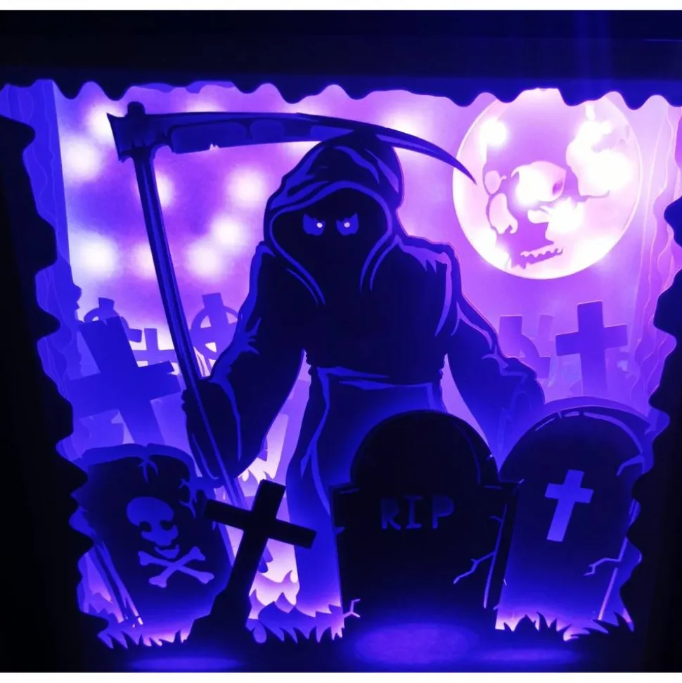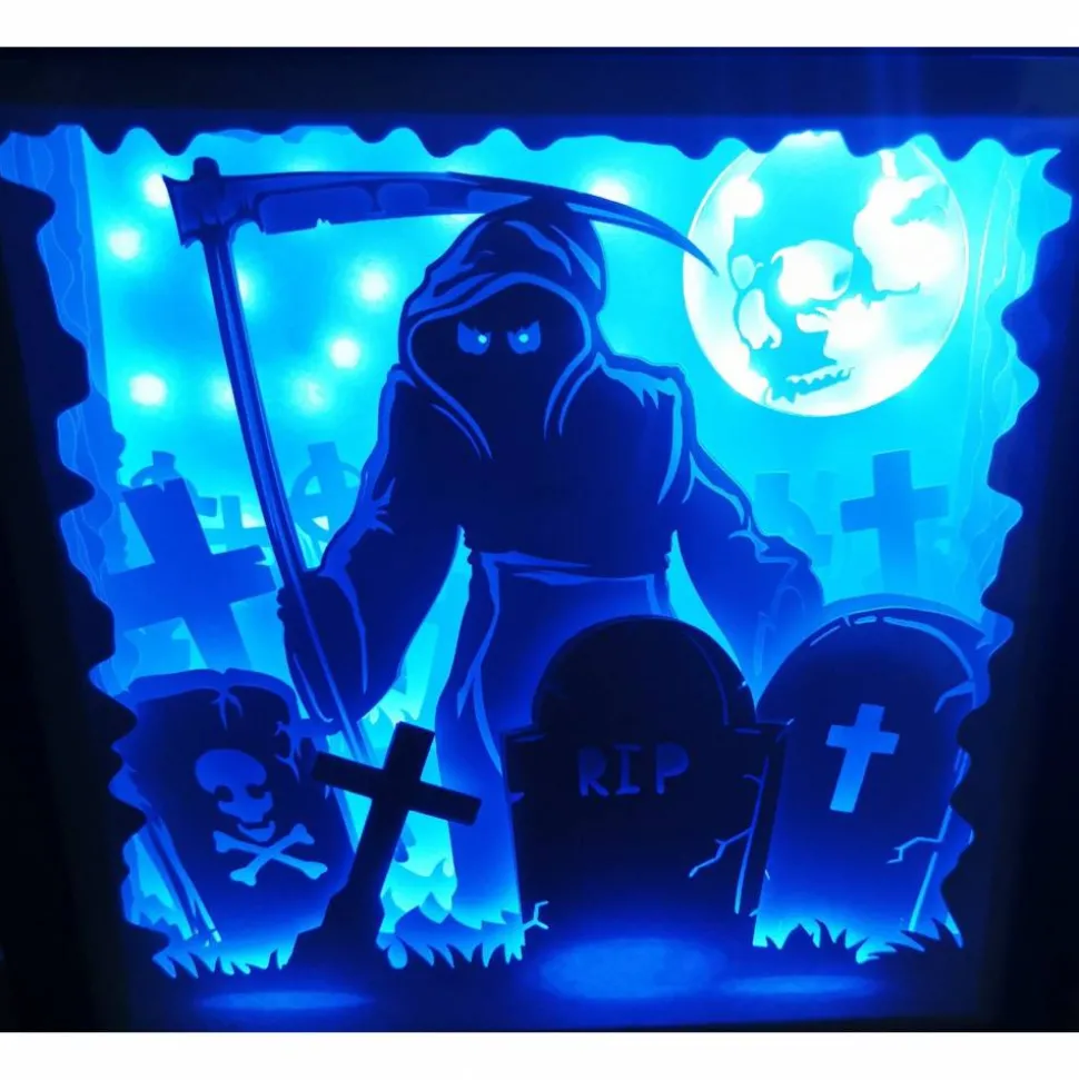 Das Motiv wurde aus zahlreichen Lagen stabilen Cardstock zusammengesetzt, die Led Beleuchtung wahlweise Farbwechsel oder einzelne Farben runden das Bild perfekt ab.