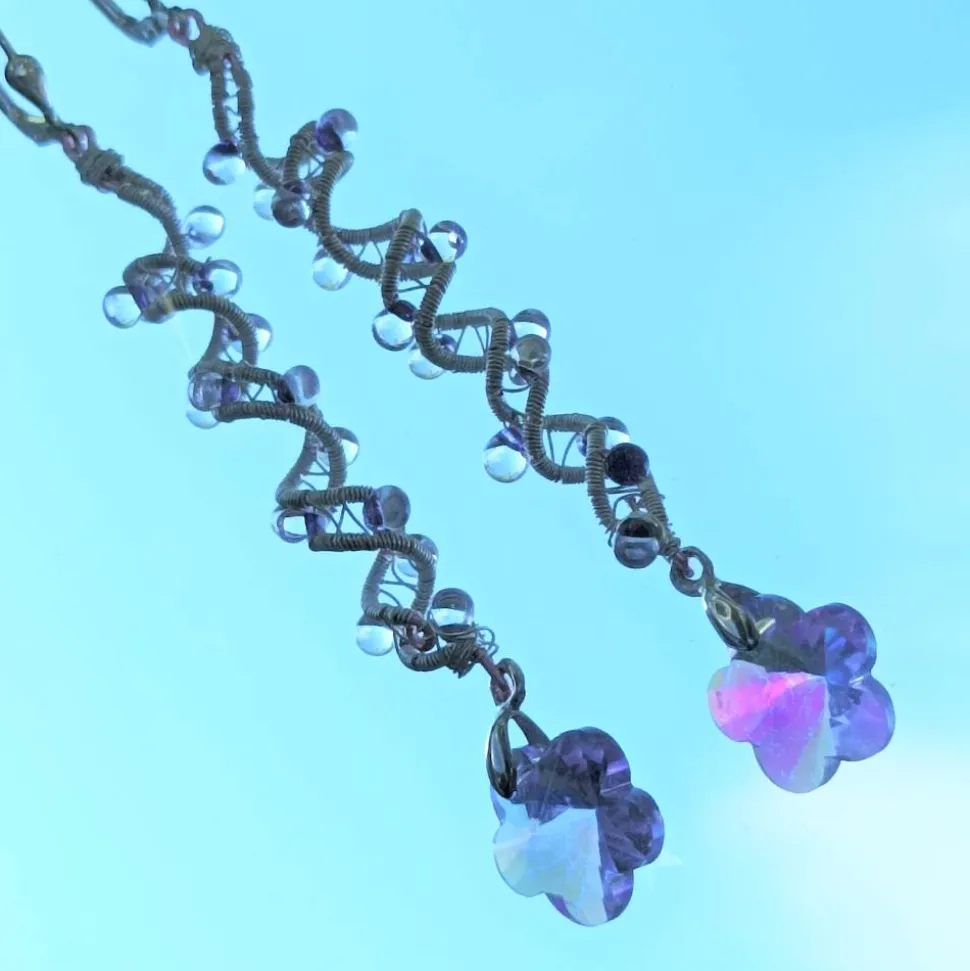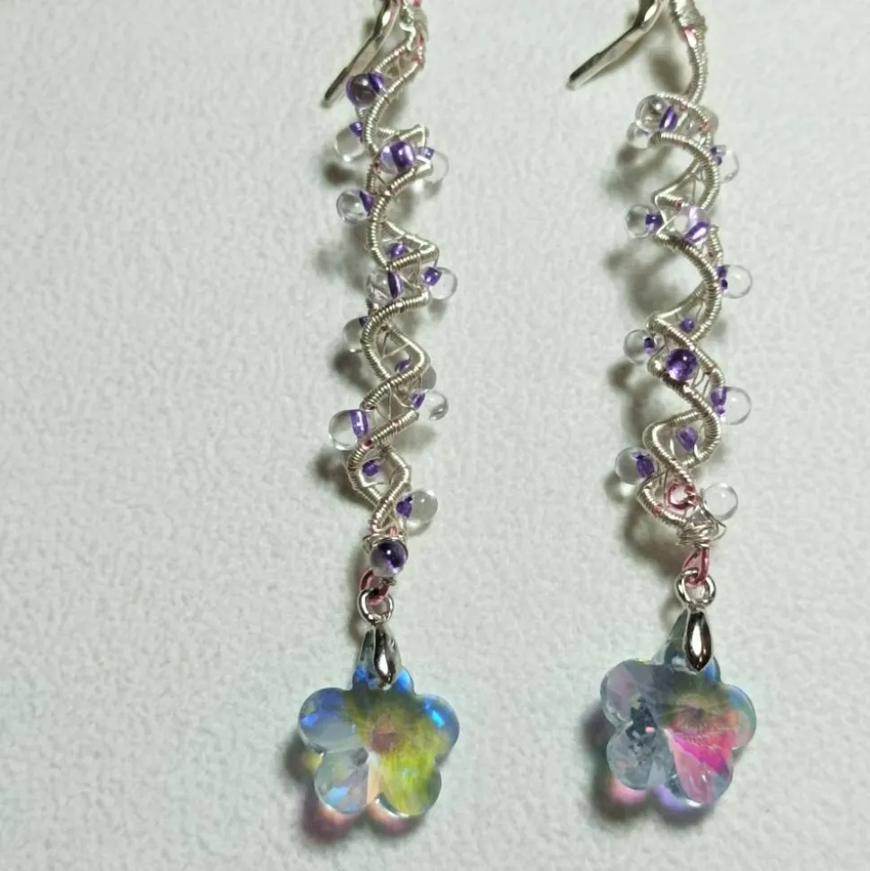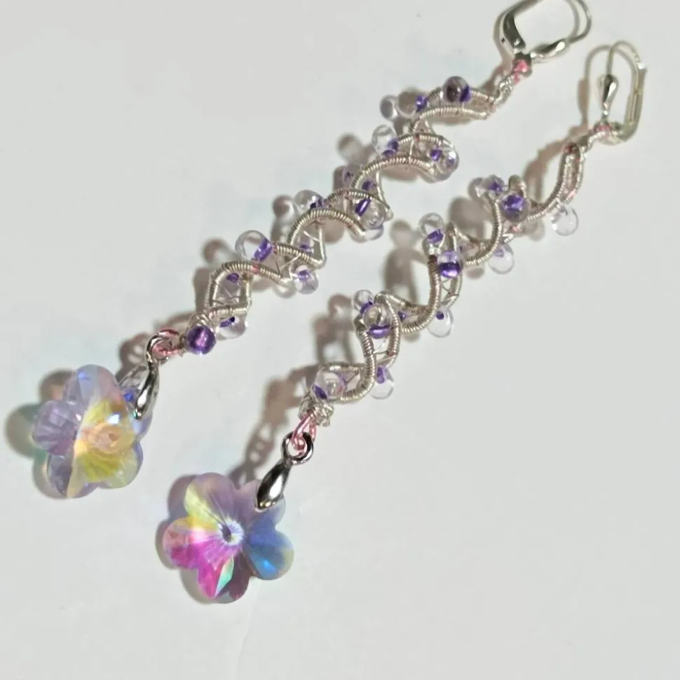Verwendet wurden Kristallschliffperlen, Mini Tropfenperlen, Schhmuckmetall, Klappbrisuren aus 925er Silber.