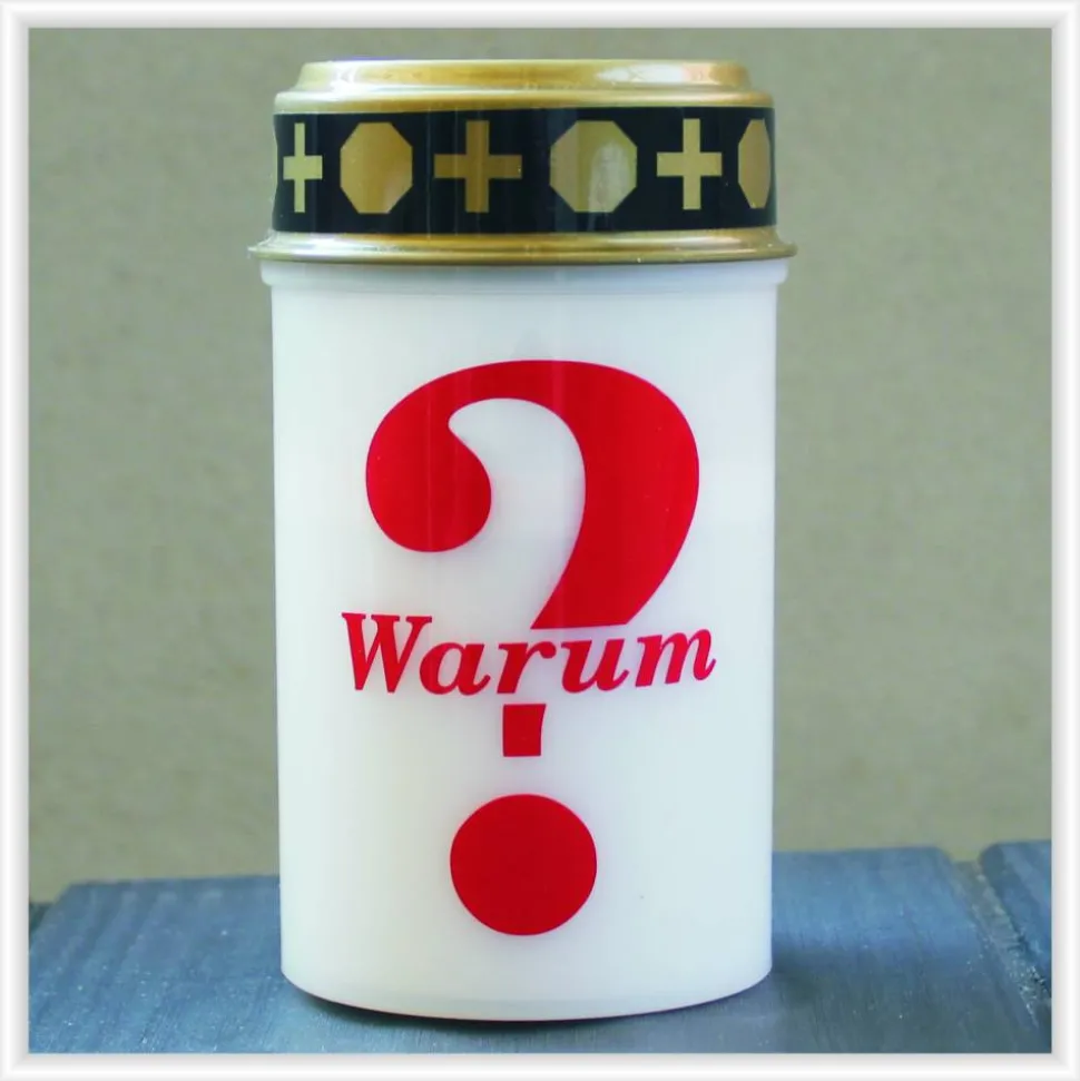 Ihr erhaltet hier ein individuell gestaltetes LED-Grablicht, mit der Aufschrift „Warum?“ (rotes LED Grablicht mit weißer Aufschrift, weißes LED Grablicht mit roter Aufschrift), welches einem originalen Grablicht täuschend echt nachempfunden wurde.
