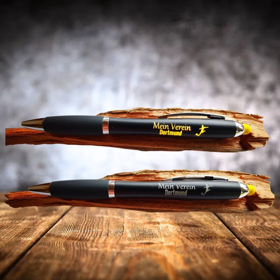Erlebe Schreiben neu mit dem innovativen LED Kugelschreiber mit beleuchteter Schrift! Dieser besondere Stift kombiniert modernste Technologie mit praktischer Funktionalität und ist das ideale Accessoire für alle, die einen ausgewählten Spruch oder Namen auch im Dunkeln sehen möchten.