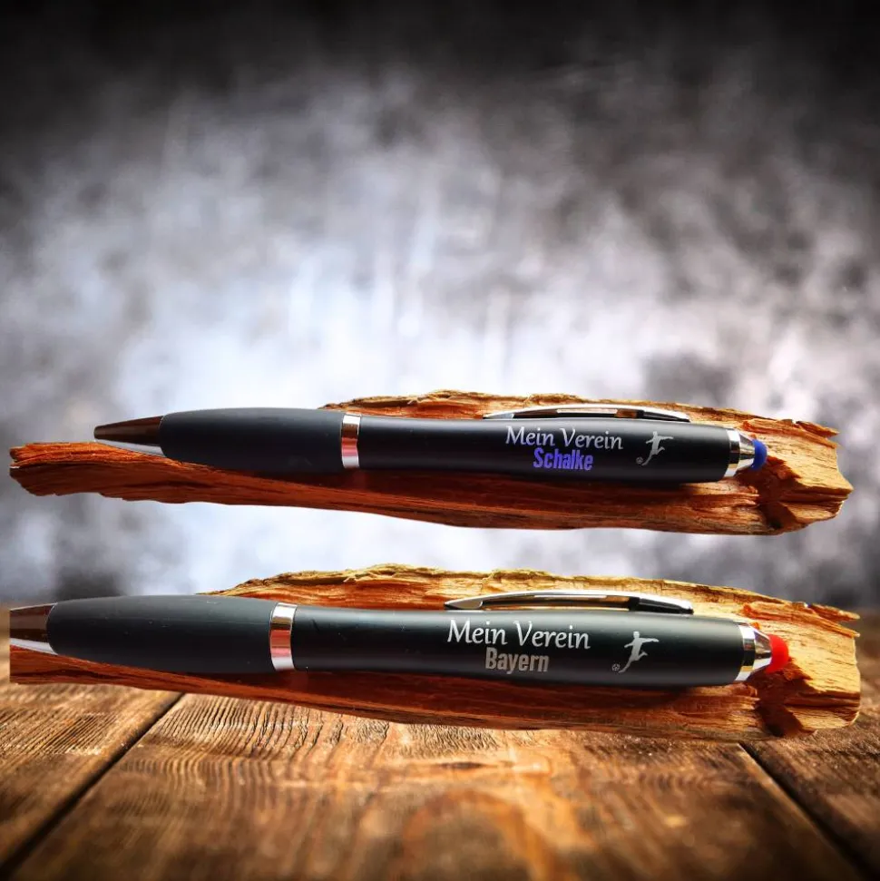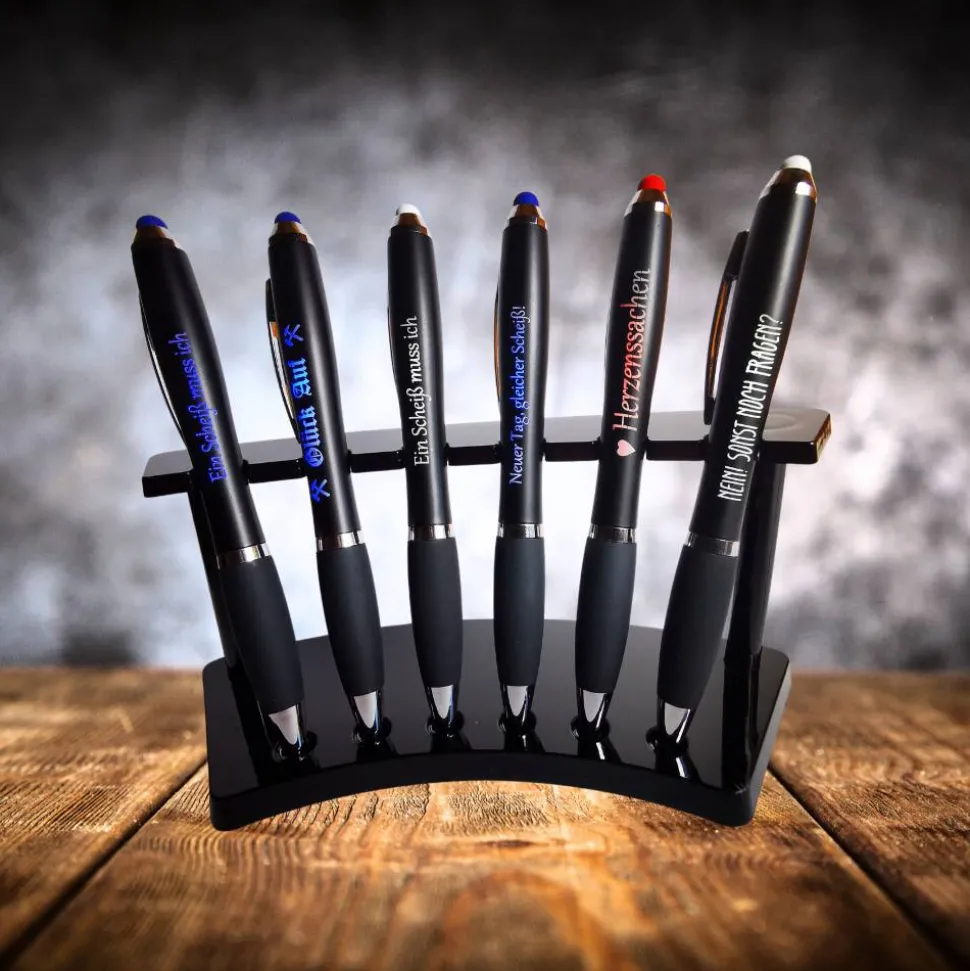 Entdecke die perfekte Verbindung aus Funktion und Design! Der LED Kugelschreiber ist der ideale Begleiter für alle, die auch im Dunkeln den Durchblick behalten wollen. Wähle einen passenden Spruch aus oder gib deinen Wunschnamen oder Firmennamen zur Personalisierung an. Eigene Texte sind auf Anfrage gegen Aufpreis möglich.