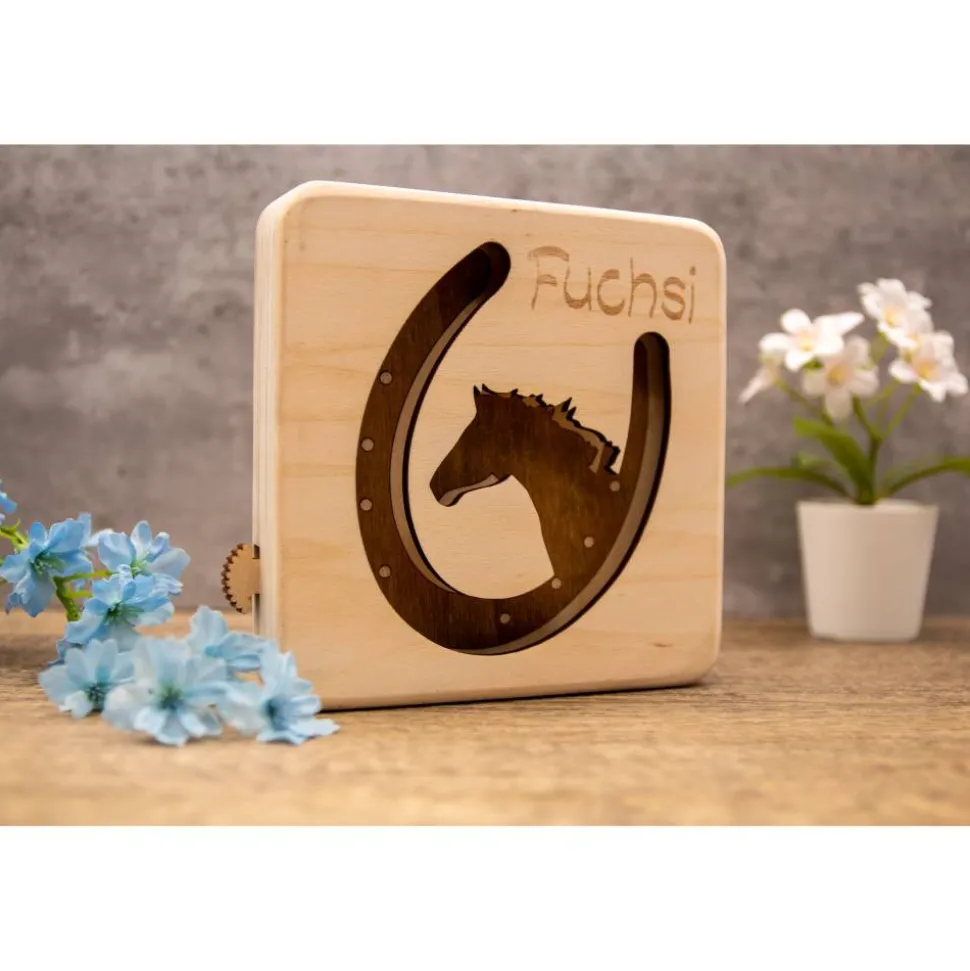 Die Herstellung erfolgt mit präziser Lasergravur, die das Pferdemotiv und das Hufeisendesign besonders detailreich hervorhebt. Das verwendete Pappelsperrholz verleiht der Lampe eine warme, natürliche Optik – jede Lampe ist dank der individuellen Maserung ein echtes Unikat. Die energiesparende LED-Beleuchtung wird durch Batterien betrieben, sodass Du die Lampe flexibel einsetzen kannst, ohne störende Kabel. Für den Betrieb benötigst Du lediglich drei Standardbatterien (nicht im Lieferumfang enthalten), die für ein sanftes, blendfreies Licht sorgen.