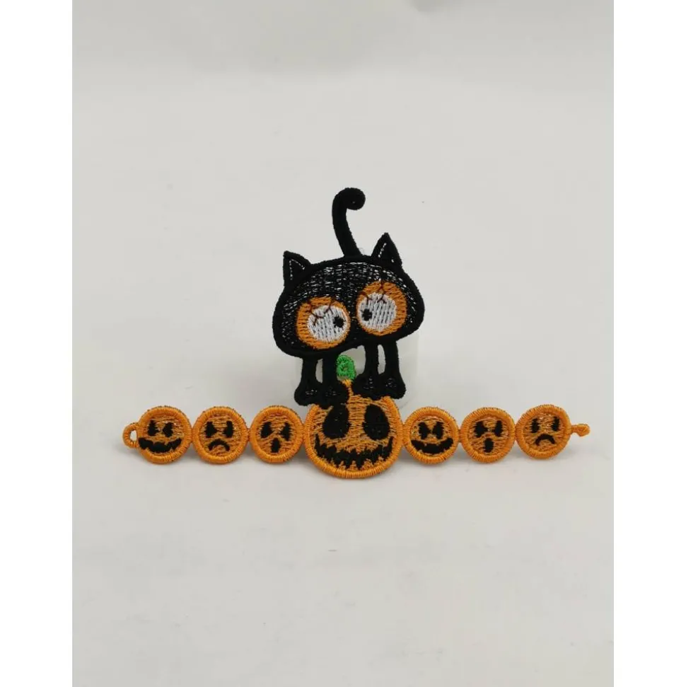 Lace Produkte werden mit einer Stickmaschine und Stickgarn auf wasserlöslichem Vlies gestickt. Nach dem Stickvorgang wird das Vlies ausgewaschen, sodass letztendlich nur die Stickerei übrig bleibt.