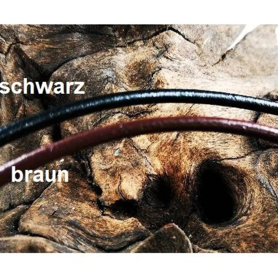 Die Lederkette ist in 2 Farben und Längen erhältlich und verfügt über einen praktischen Steckverschluss.