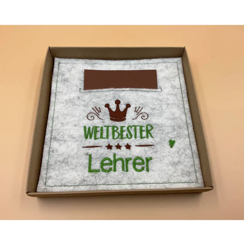Im Inneren eine bestickte Filzkarte mit Einschub für Geld oder eine Botschaft, oder Beides!