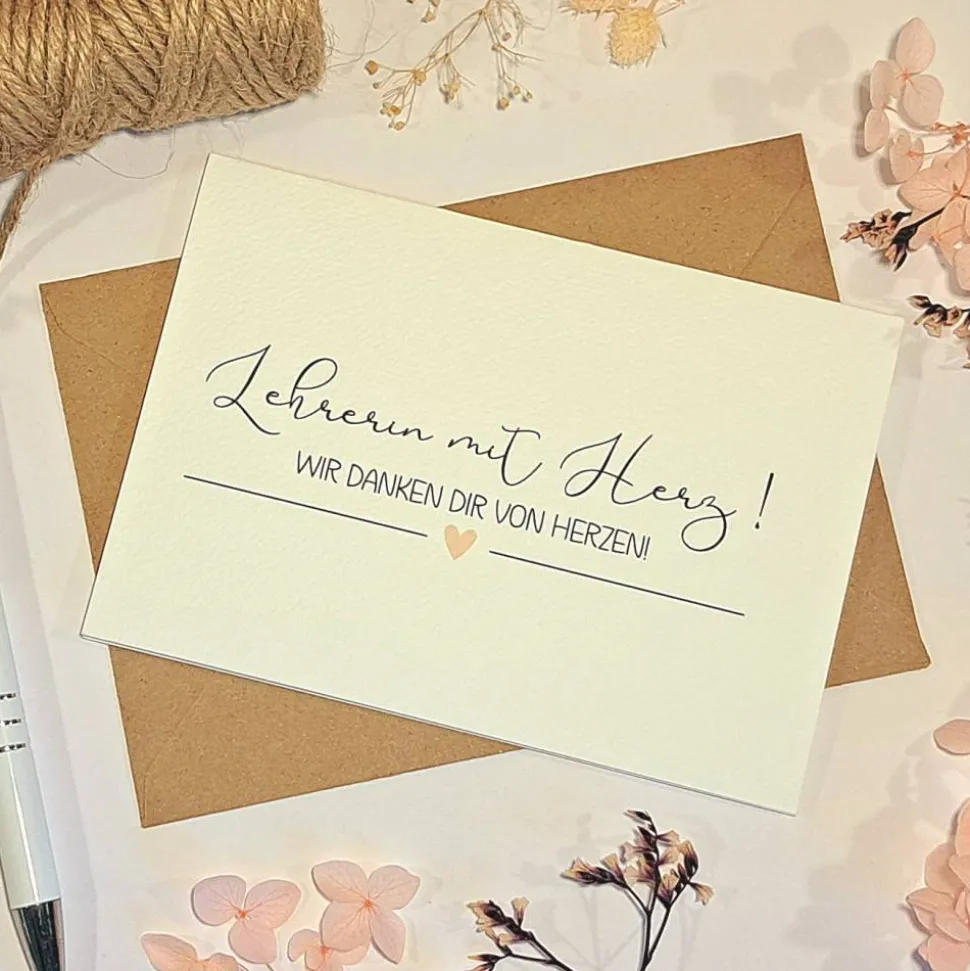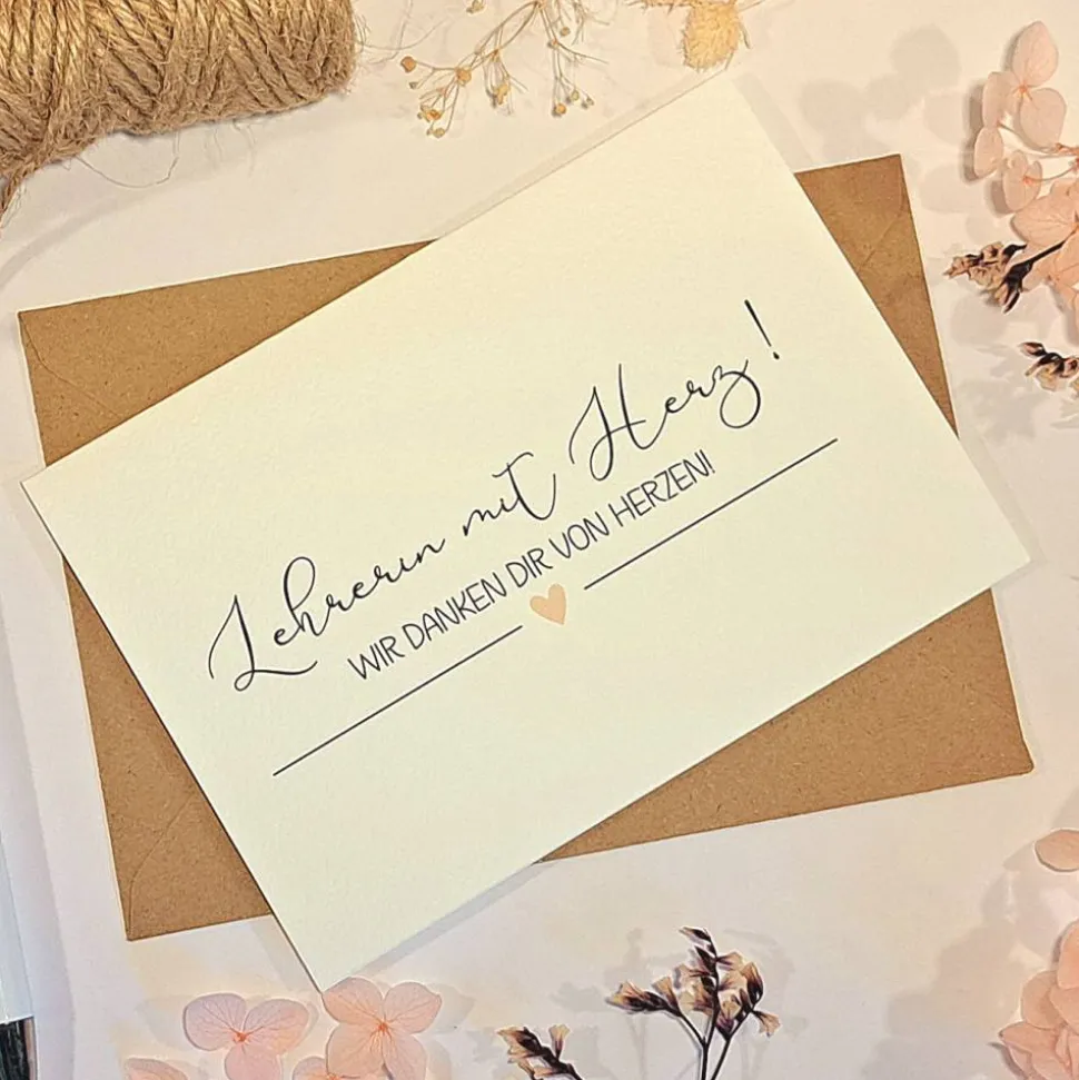 Lehrerin mit Herz! Zeige deiner Lieblingslehrerin, wie sehr du ihre engagierte Unterstützung und die liebevolle Gestaltung des Schulalltags schätzt. Diese minimalistische und hochwertige Geschenkkarte ist ideal, um Danke zu sagen und Wertschätzung auszudrücken.