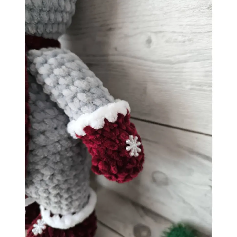 Leni die Schneemaus ist bereit für den Winter! Diese bezaubernde Figur wurde mit viel Liebe aus hypoallergener, superweicher Plüschwolle gehäkelt. Mit ihrer Größe von ca. 31 cm (ohne Mütze) ist sie perfekt zum Kuscheln, Dekorieren oder Verschenken geeignet.
