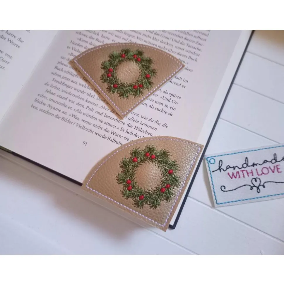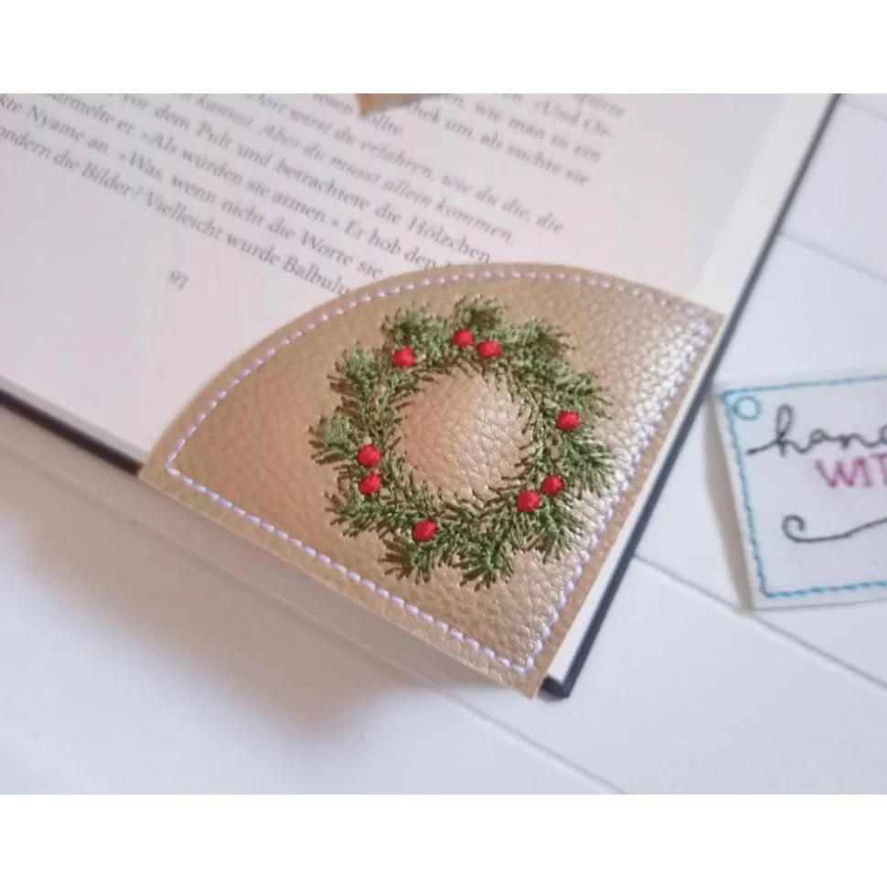 Entdecke ein einzigartiges Lesezeichen mit liebevoll gesticktem Weihnachtskranz – gefertigt aus veganem Kunstleder in edlem Goldton. Dieses handgemachte Lesezeichen ist ein wunderschöner Begleiter in der Adventszeit und ein besonderes Geschenk für Bücherfreunde, Leseratten oder als kleine Aufmerksamkeit für den Adventskalender.