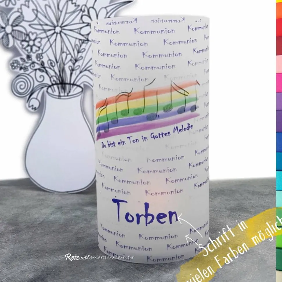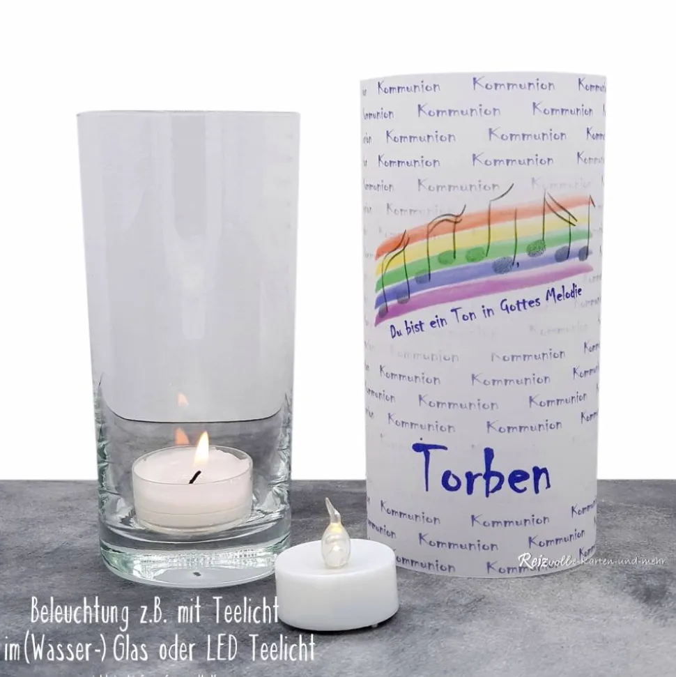 Gestalte deine Kommunionfeier mit einer einzigartigen Lichthülle aus Transparentpapier zum Thema „Du bist ein Ton in Gottes Melodie“!