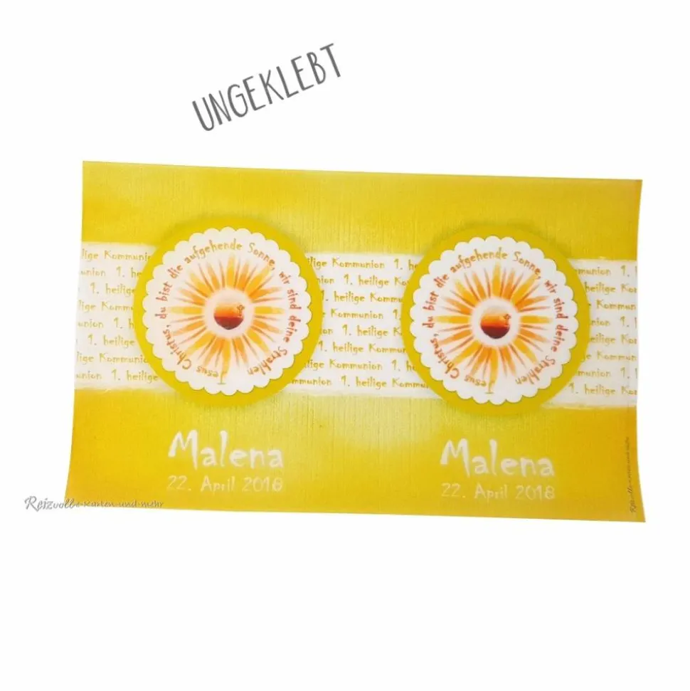 Du kannst das Motto auf Wunsch individuell anpassen lassen – kontaktiere mich einfach dafür. Trage den Namen des Kommunionskindes und das Datum der Feier oben ein, um die Lichthülle noch persönlicher zu gestalten.