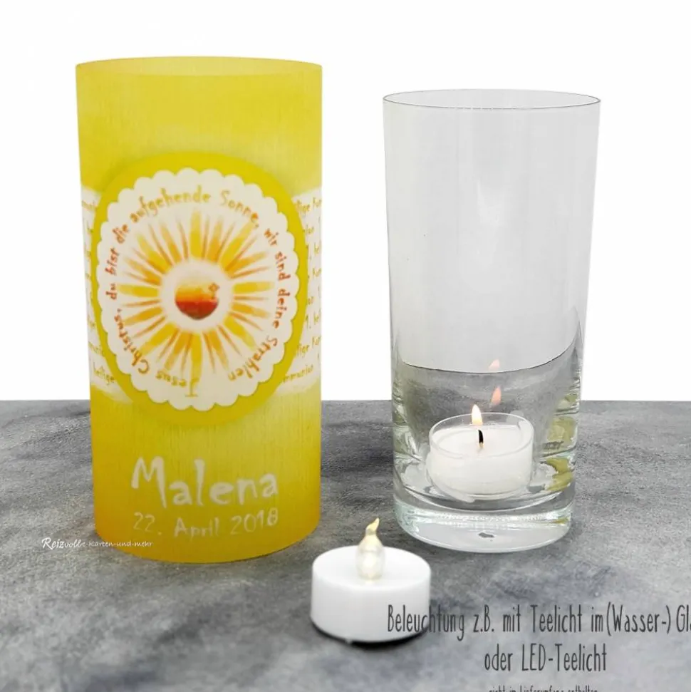 Gestalte deine Kommunionfeier mit einer einzigartigen Lichthülle aus Transparentpapier in sonnigem Gelb!