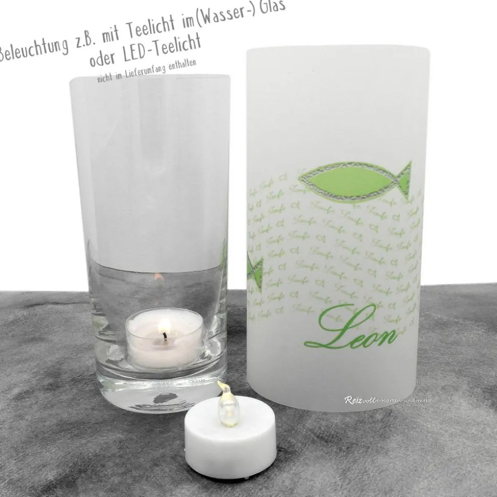 Die Lichthülle wird ungeklebt, aber bereits mit dünnem Doppelklebeband versehen geliefert. So kannst Du sie mit wenigen Handgriffen selbst zusammenkleben. Glas und Leuchtmittel sind nicht dabei – nutze zur Sicherheit Teelichter nur in hohen Gläsern (z.B. leere Senfgläser) oder greife auf LED-Teelichter zurück.