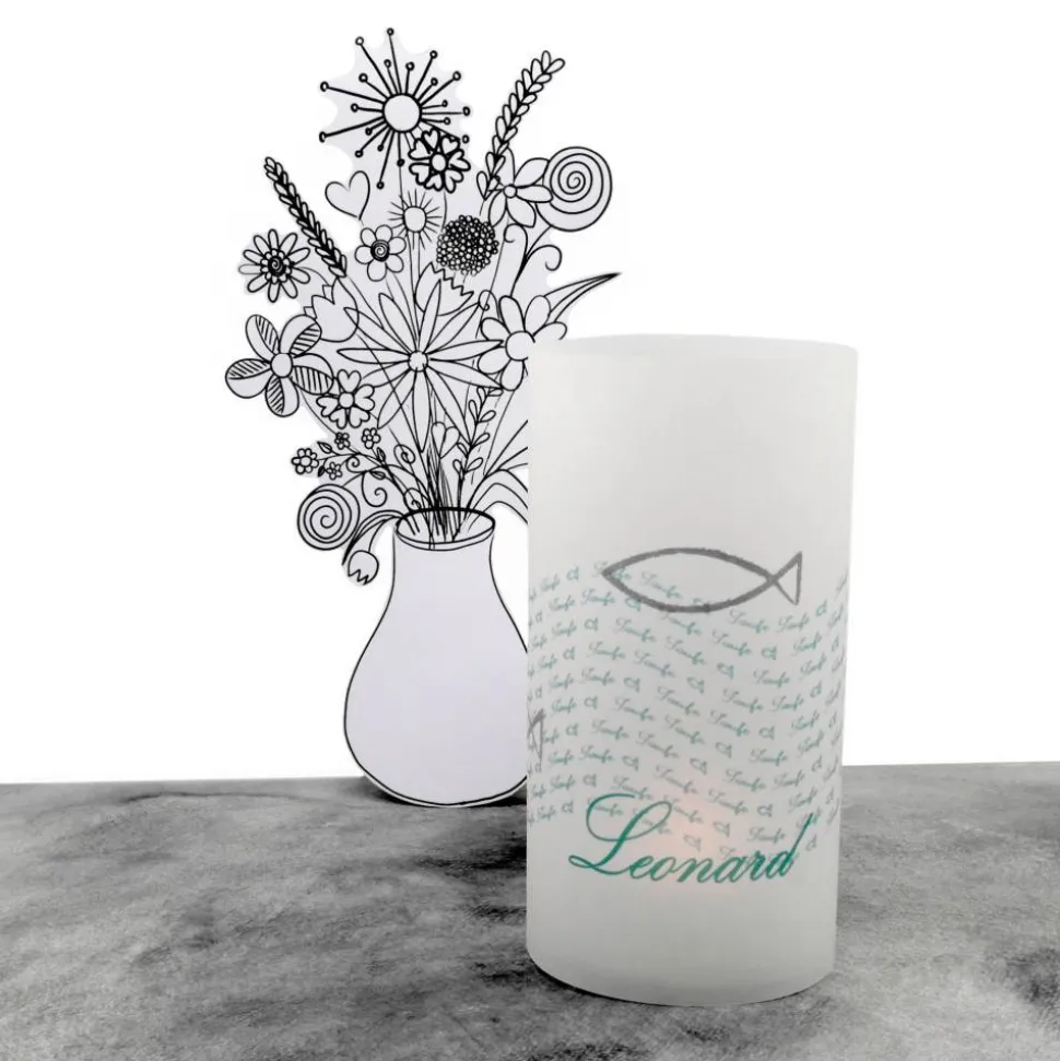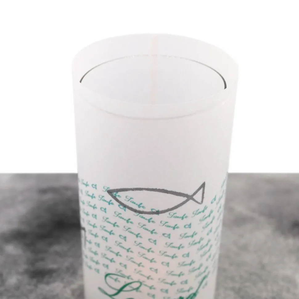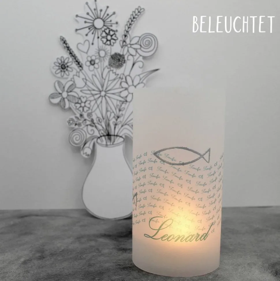 Trage einfach den Namen des Täuflings ein und mache dein Tischlicht zur ganz persönlichen Taufdekoration!