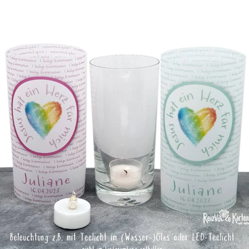 Entdecke die einzigartige Lichthülle zur Kommunion – Jesus hat ein Herz für mich als besondere Tischdekoration.