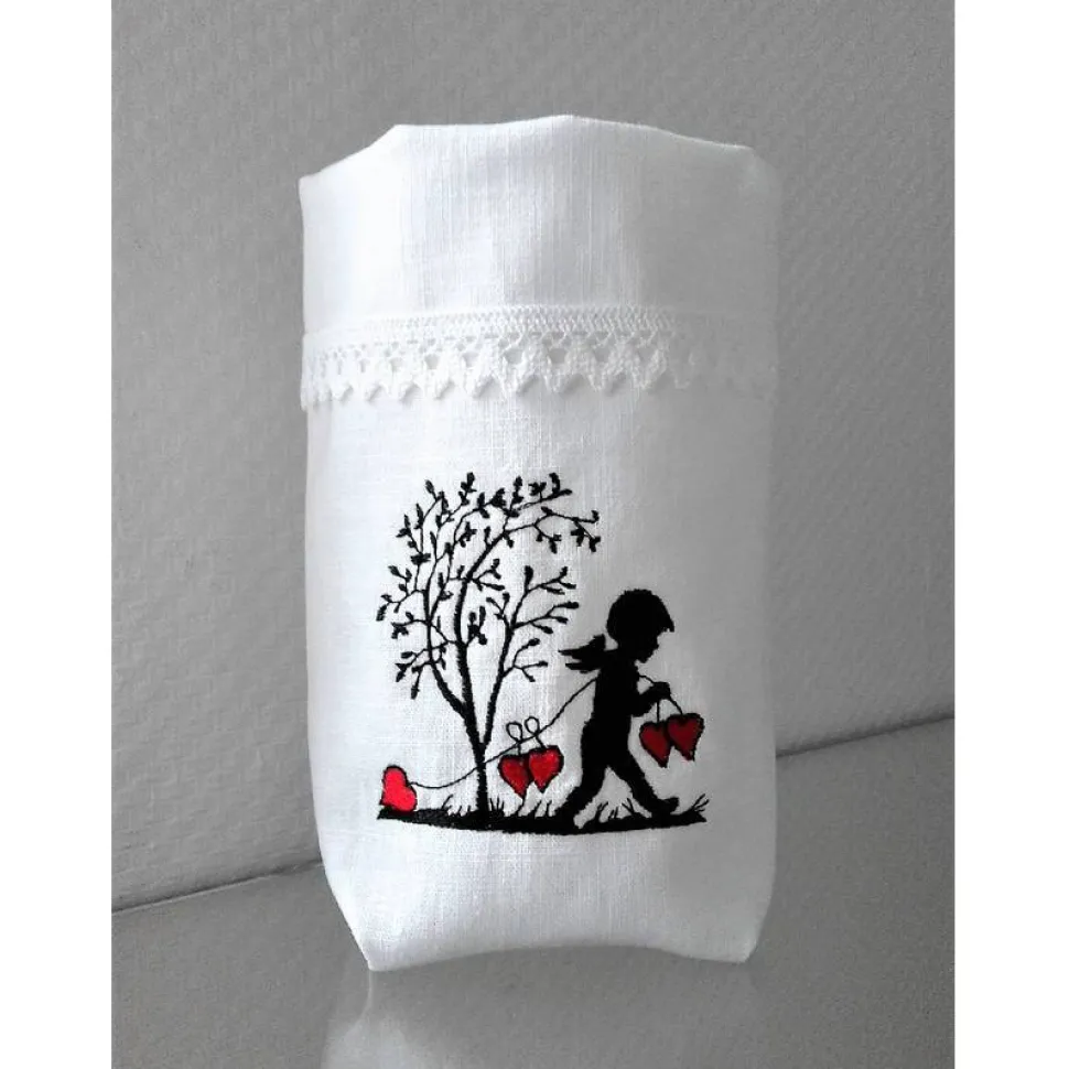 Der Lichtbeutel ist aus 100% Leinen mit Baumwollspitze.