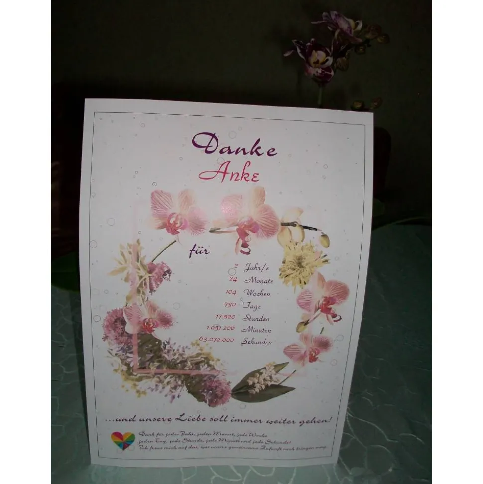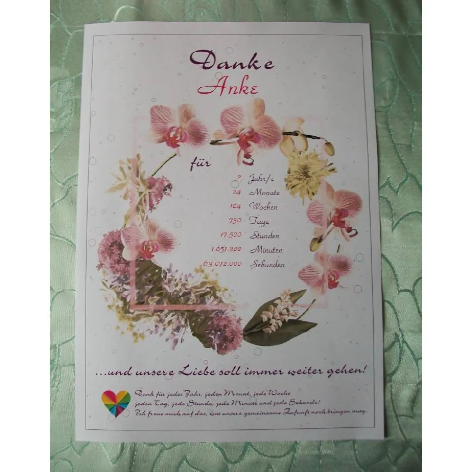 Material: Dieser schöne Liebesbeweis wird mit dem gewünschten Namen gestaltet und auf satiniertem hochwertigen 250 g/qm Karton gedruckt.