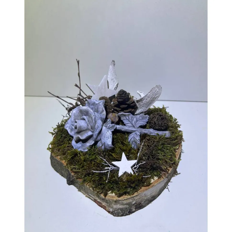 Es besteht aus einer Rose, getrockneten Moos und weiteren Naturprodukten.