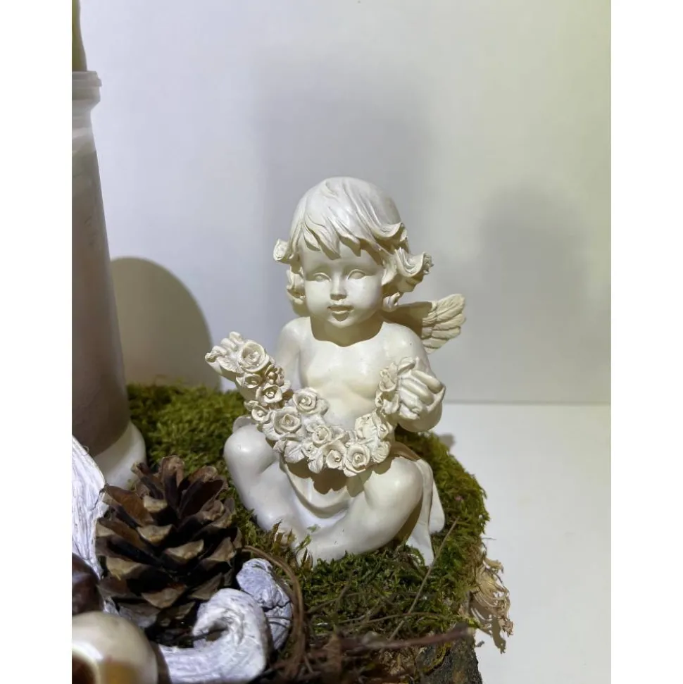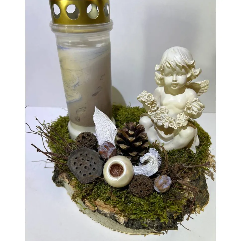 Es besteht aus einem Engel, getrockneten Moos und weiteren Naturprodukten.