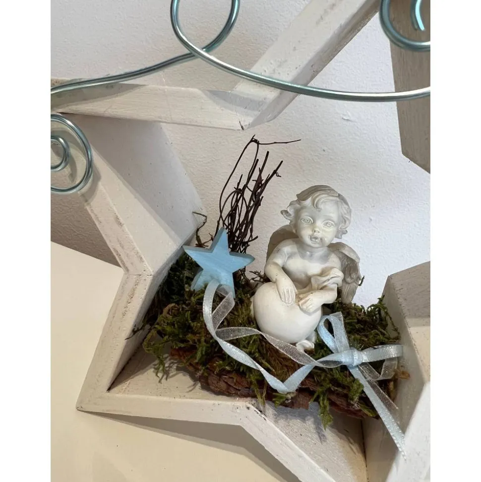 Es besteht aus einem Engel, Baumrinde getrockneten Moos und weiteren Naturprodukten.