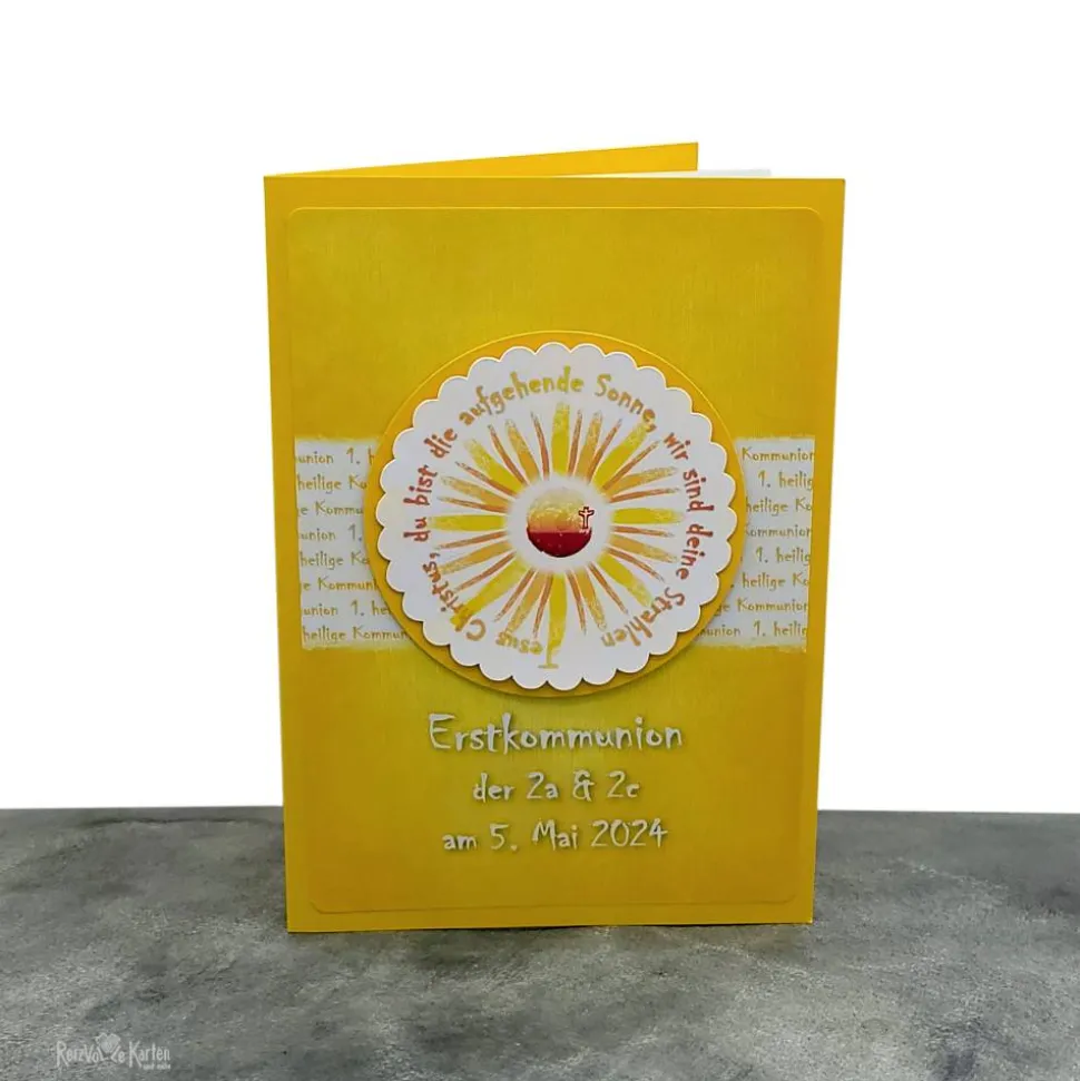 Gestalte dein persönliches Liederheft Cover zur Kommunion mit dem wunderschön gestalteten Umschlag zum Thema „Jesus Christus, du bist die aufgehende Sonne, wir sind deine Strahlen“.