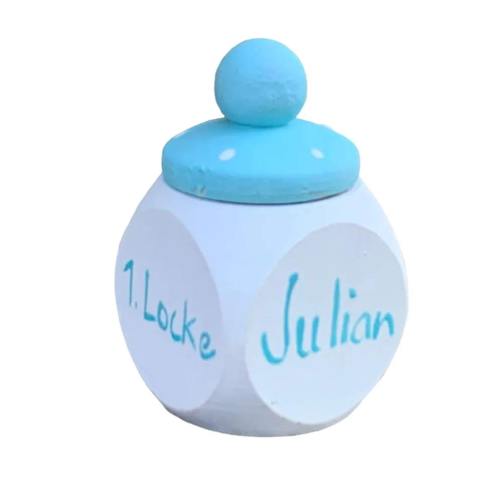Holzdose im würfelähnlichem Design, aus Buchenholz, mit Schraubverschluss. Der Deckel hat einen kleinen runden Griff.