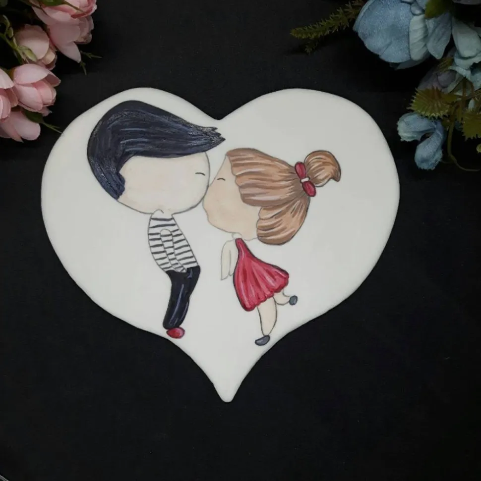 Das romantische Herzmotiv mit verliebtem Paar eignet sich ideal für Hochzeiten, Verlobungen, Valentinstag, Jahrestage und romantische Geburtstage.