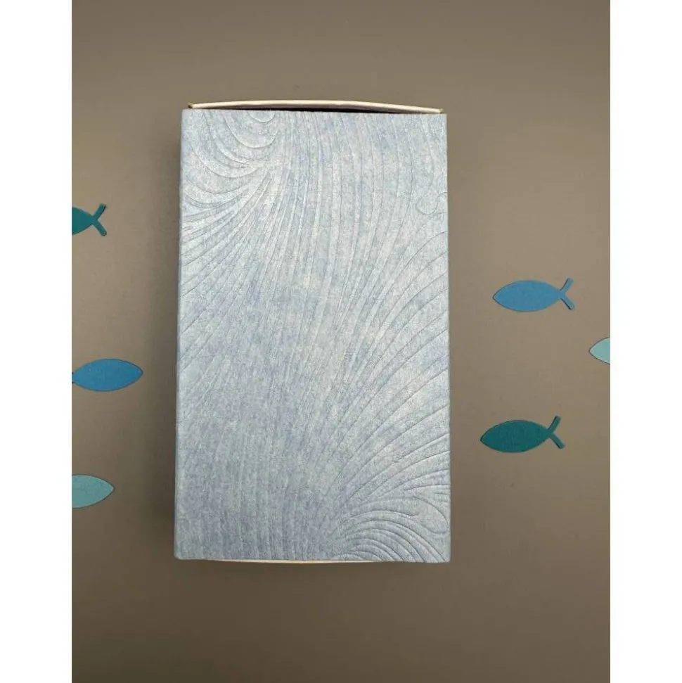 Das Außenteil der Schachtel ist mit farblich passendem, hellblauem Designpapier beklebt und macht die Geschenkbox zu einem echten Hingucker. Das Motiv ist komplett handgemalt und mit hochwertigen Materialien gefertigt: